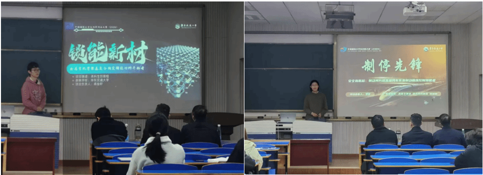 為激發(fā)學(xué)生創(chuàng)新創(chuàng)業(yè)熱情,為2026年中國(guó)國(guó)際大學(xué)生創(chuàng)新大賽選拔選手,材料學(xué)院大學(xué)生創(chuàng)新大賽院賽于11月26日下午在教7棟301教室舉行。這次比賽中,由材料學(xué)院黨委副書記胡國(guó)慶老師、副教授劉德佳老師、荀曉偉老師擔(dān)任評(píng)委,姜佳宜擔(dān)任主持,學(xué)創(chuàng)部負(fù)責(zé)記錄。
